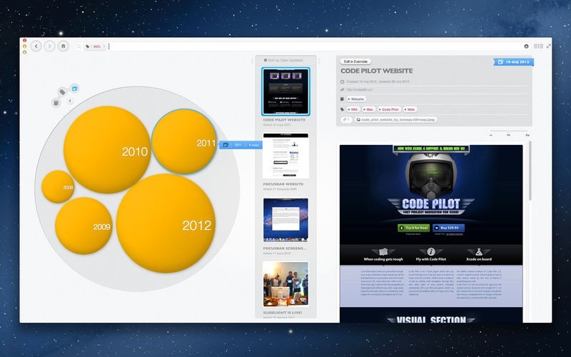 Bubble Browserはクリーンで視覚的な(かつ楽しい!)Evernote に記録された記憶を探検する方法です。