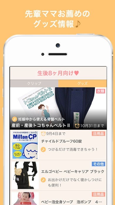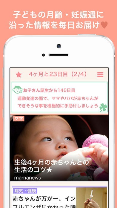 妊娠や出産、育児などに関する耳寄りな情報を提供しているアプリ