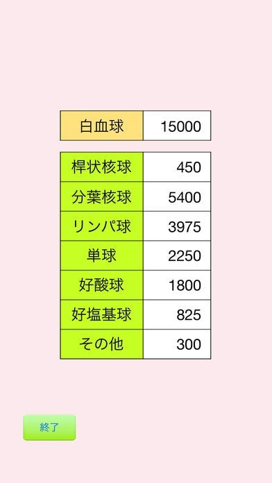 白血球数を入力して計算ボタンを押せば各血球数が計算される