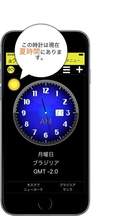 6. 時間が夏時間の場合は、回転する太陽の画像が時計の左上に表示されます。