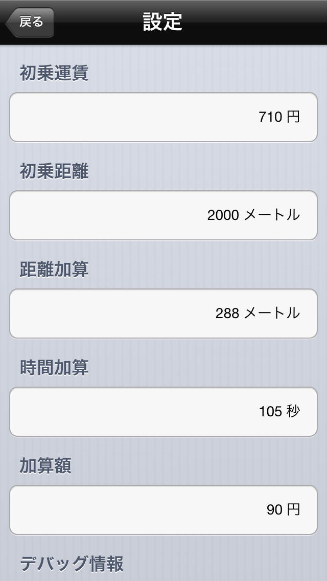・初乗運賃(500円~750円)、初乗距離(1,000メートル~2,000メートル)等を指定可能です。