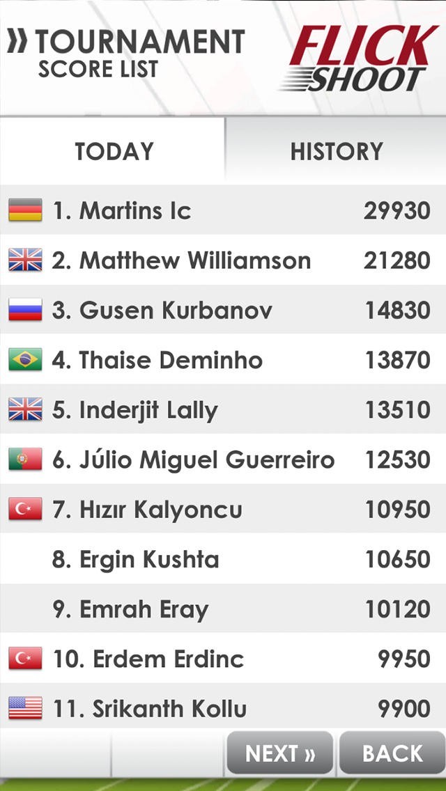Flick Shootの順位推移表