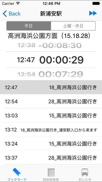 次回のバス発車時間まで、秒単位でリアルタイムで教えてくれます