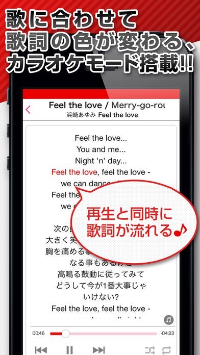 歌詞の色がかわるので、カラオケの練習のお供に!
