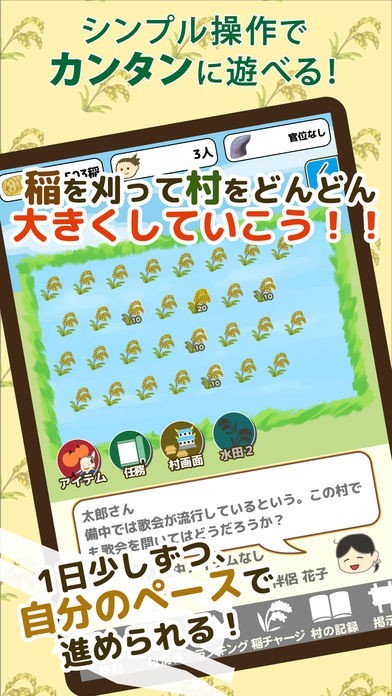 ※ゲーム開始後に稲が生えてこない場合、画面を何度か切り替えていただき、水田画面を表示したまましばらくお待ち下さい。