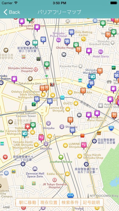 授乳スペースやおむつ替え設備などの場所をマップ上で表示してくれる!