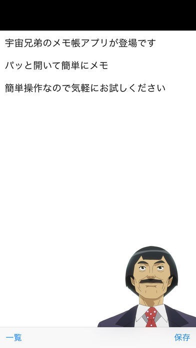 App Storeより引用宇宙兄弟のキャラクターを使用したメモ帳アプリです。