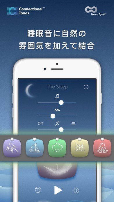 (コネクショナル・トン)は新しい形態の脳波誘導サウンドであり、睡眠音楽と一つの音楽のように連結され動きます。