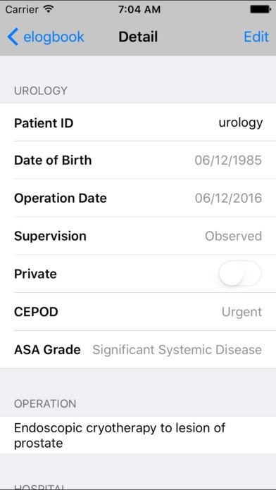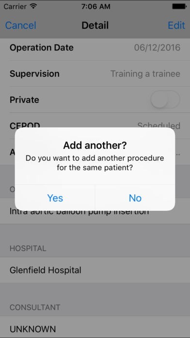 Once you have entered your elogbook.org login credentials, the app will synchronise with the individual account. All operation and hospital codes, your favourite procedures, consultants and hospitals will be retrieved for use with the app to record all the necessary information in a format that will be instantly recognisable from the elogbook.org webpages.