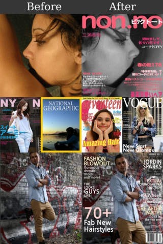 200種類以上の雑誌カバーを収録。自分や友達の写真と合成して、憧れの雑誌の表紙を作ろう!