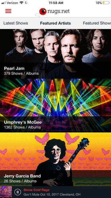 様々なバンドグループの音楽を取り扱うnugs.net公式アプリ!