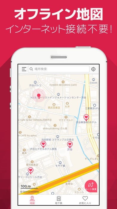 ネットワーク接続を気にせず、場所・地図・地下鉄を検索!
