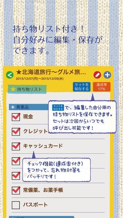 持ち物リスト、お土産リストの作成機能付き!旅をもっと楽しく!