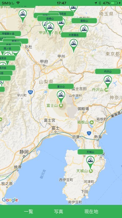 App Storeより引用日本百名山を地図上で確認できるアプリです。