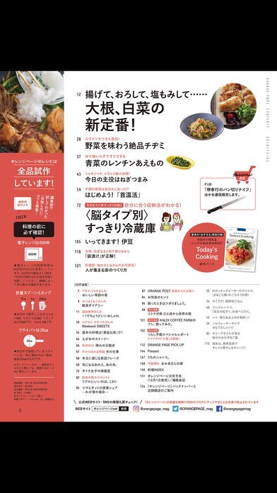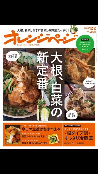 オレンジページは、雑誌のオレンジページをアプリで定期購読し、旬の食材を使った献立や暮らしに役立つ情報を読むことができる