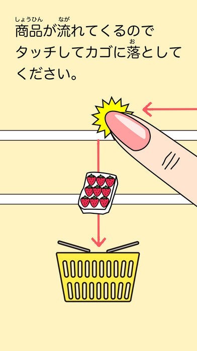 商品を買い物かごに入れろ!タイミングに合わせて画面をタップしていくお手軽カジュアルゲーム
