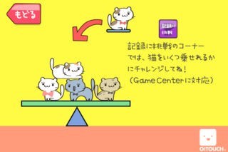 App Storeより引用バランスをとりながらシーソーの上にネコを乗せていくおもしろ可愛いゲームです。