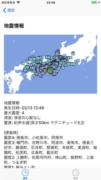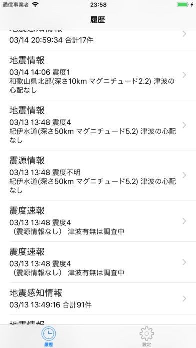 震度1や2といった比較的小さい揺れでも履歴に残るようになっており、最近日本国内のどのエリアで地震活動が活発化しているのか知ることができるので、とても使い勝手が良いです。