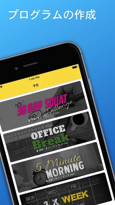 4週間にわたるトレーニングプログラムを自分で作成することができるようになっていて、プログラムの達成度をモニタリングしながらチャレンジすることが可能となっています。