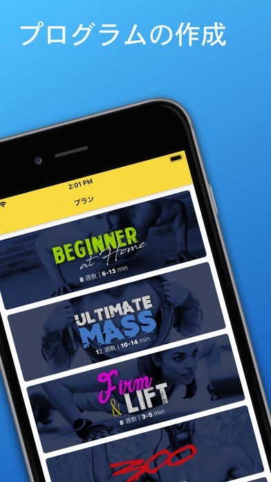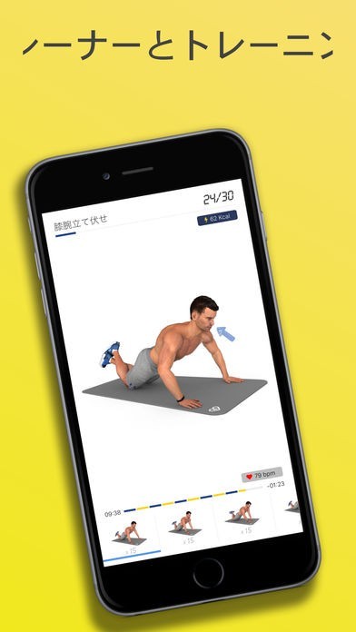 作成機能があり、好みのトレーニングを選んで、カレンダーにセットします。運動による達成度がモニタリングされ、長続きさせることができます。運動中はリズム音楽を流します。