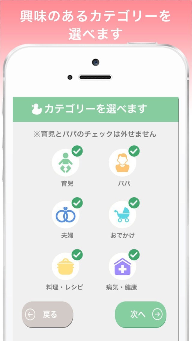 カテゴリー機能搭載!育児、夫婦、おでかけなどの各種カテゴリーから選択可能!