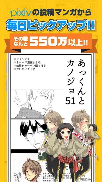 イラスト交流サイトであるpixivから派生してリリースされた漫画アプリです。pixivからデビューした人気漫画作家の作品を好きなだけ読むことができます。ジャンルは恋愛・コメディー・アクション・ホラーなど豊富に揃っています。作品数も4000作品以上あるので読み応え抜群です。また、編集部が選りすぐった作品が毎日更新されるので、今まで読んだことが無かった新しい漫画を発見することができます。お気に入りの作家はファンボタンを押して登録しておき、新着情報の通知などを受け取ることができます。そして作家には応援コメントを送ることもできるので、作家と読者がコミュニケーションをとることも可能です。