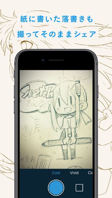 特殊なカメラ機能を搭載!フィルター効果で手描きイラストも取り込める!