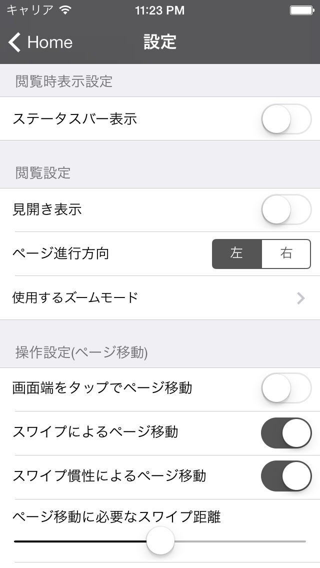 - スワイプでのページ移動(無効化可能)&スワイプの感度調節機能