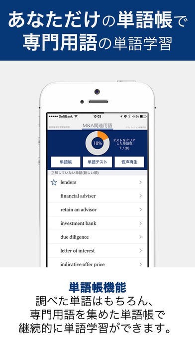 ニュースを読んでいるときに調べた単語や専門用語は、単語帳の機能で集中的に学習できるようになっています。単語テストの機能もあり、繰り返し挑戦することでしっかり身につきます。