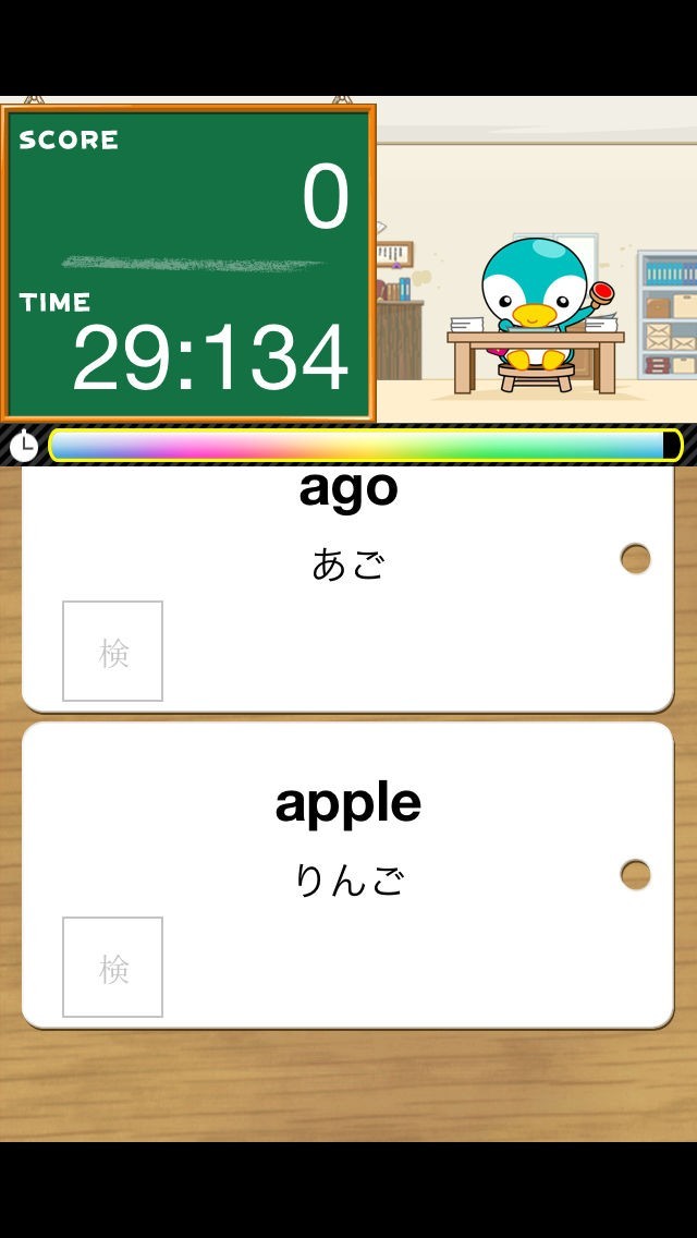 可愛いペンギンキャラのペン太が、英単語の検品を行うゲーム形式の英単語学習アプリ。ゲームを進めていく事で苦手な英語が身近になり、自然に暗記できます。ゲームのやり方は、英語と日本語の意味が書かれたフラッシュカードが流れてくるので、意味があっていれば検のスタンプを押すという単純な操作も人気の理由です。中学・高校の英単語6000が掲載されていて、30秒で難問解けるか競います。発音を聞くこともできるので目でも耳でも学習できますよ。中学・高校生にとっては英単語学習に。大人には頭の体操にピッタリのアプリです。