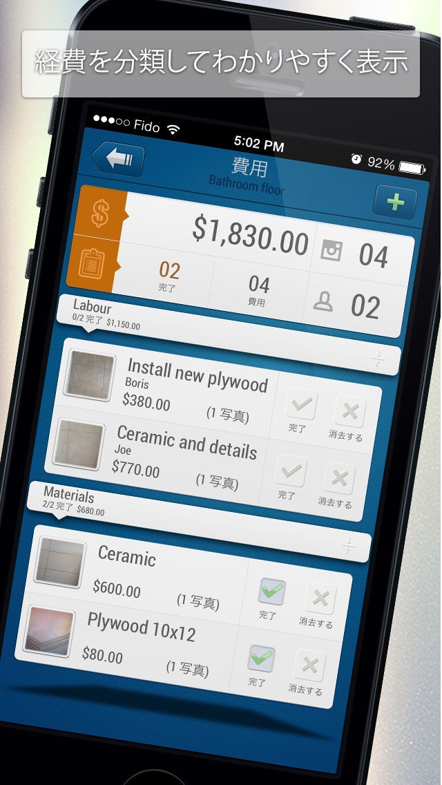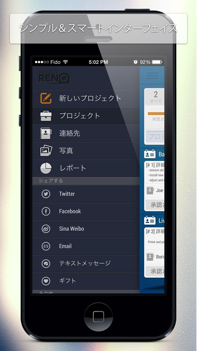 App Storeより引用Project Renoはあなたのプロジェクトの企画、監視、進捗状況などを簡単、便利に管理します。このアプリは建築家、工事請負業者、デザイナー、マイホーム所有者、また他のフィールドの方々に、あなたのプロジェクトをあらゆる面から思いのままに管理することを可能にします。簡単な塗装の仕事から家やビルの改装、改築工事まで、Project Renoは幅広い仕事の管理が可能です。プロジェクトの見積もりやインフォーメーション等も添付のフォーマットから簡単にメールでお客様、請負業者、デザイナー、建築家、そしてパートナーにも送付することができます。