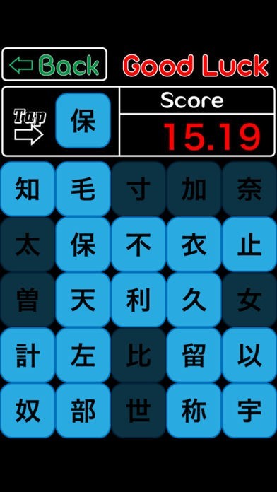 表示された漢字「安 - 无」を25のパネルから選択するだけの単純なゲームをすることで、自然と漢字を学ぶことができます。