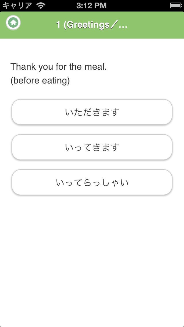 3択クイズで繰り返し日本語が学べる!わからない問題はTwitter・facebookで共有して疑問も解決! 「学ぼう にほんご1」は、ゲーム感覚で日本語学習ができる初級者向けの語学学習アプリです。 英語、中国語、韓国語に対応していますので、これから日本語を学びたいと思っている海外の方に「ひらがな」や「カタカナ」から、日常的に使う「あいさつ」や「文法」覚えることができます。 出される問題は3択クイズ形式なので、クイズに答えるようなゲーム感覚で学習を進めることができます。 20題ずつの出題なので、少しの空き時間があれば繰り返し挑戦することができます。 このアプリにはクイズの共有機能も搭載されているので、Twitterやfacebookでわからない問題を共有して、友達と解決することができます。 誰かに教えてもらえる日本語学習の進行に役立つ機能です。