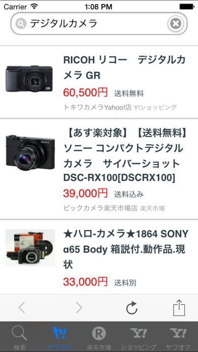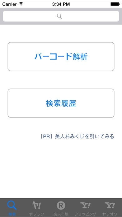 「価格検索」はアプリを起動して商品のバーコードをスマートフォンのカメラで読み取ることによって、楽天市場やヤフーオークションなどのサイトをまとめて検索可能なアプリになります。各サイトの価格やユーザーによるレビューなどを簡単に比較することができるようになるほか、検索履歴をあとから確認することも可能です。
