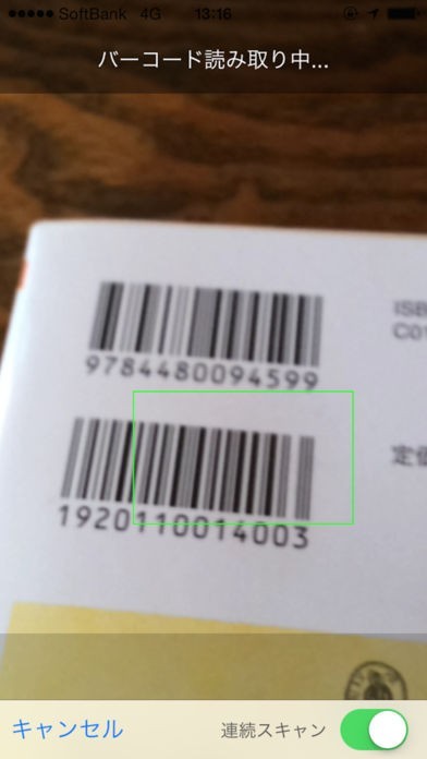 速読スキャン機能が搭載されていて、複数の商品をまとめて検索したい場合にはバーコードを次々と読み取ることができるようになっていて、あとからじっくり価格などを調べることができます。