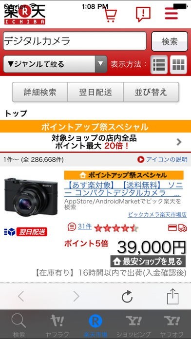 商品に付けられているバーコードをスマートフォンで読み取ることによって、楽天市場やヤフーオークションなどの価格やレビュー情報をまとめて検索することが出来るようになっています。