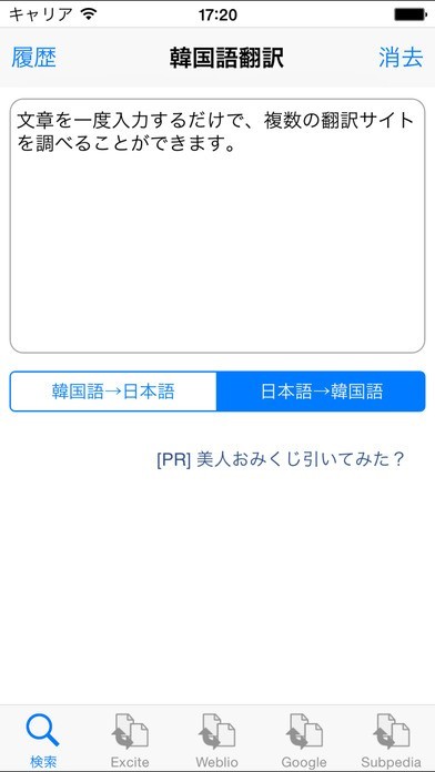 日本語を韓国語に、韓国語を日本語に出来るので気になる単語をすぐに検索できます