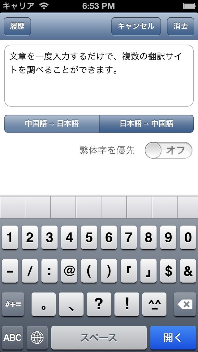 中国語に特化した翻訳サービスを利用したい場合は、ほかの言語への翻訳サービスが邪魔に感じることもあります。また、機能が増えることによって使いにくいと感じる方も増えるという側面があります。そこで便利なアプリが「中国語翻訳」です。このアプリでは、中国語から日本語への翻訳とその逆に対応しています。中国語の翻訳結果はネイティブ発音による読み上げに対応しています。検索結果はメールで送信したり、コピーしてメモ帳に貼り付けて保存することができます。