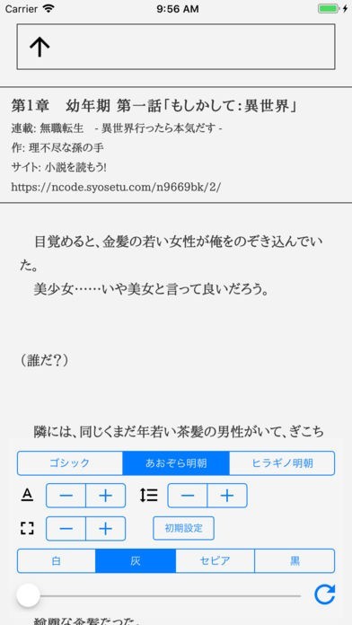 統一フォーマットで小説表示が行えるため、本来はwebサイトごとにばらばらなフォントの大きさやカラーなどを気にすることなく、見やすい表示で文章を読み進めることができます。