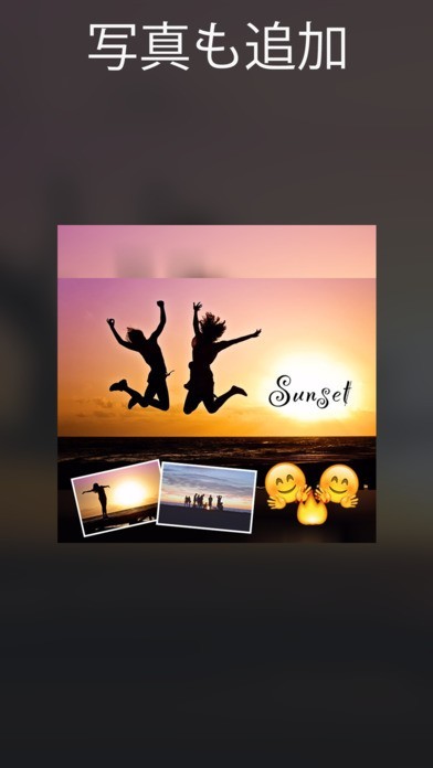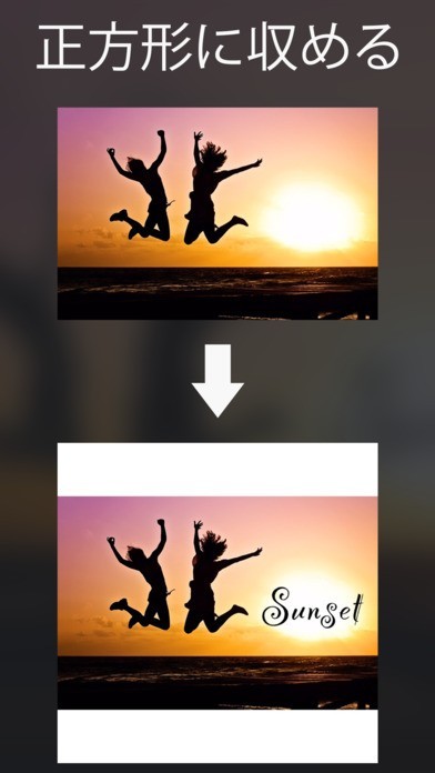 縦長写真も正方形に収める機能で見栄えアップ!文字入れ機能でメッセージの入力も可能!