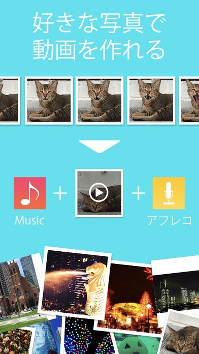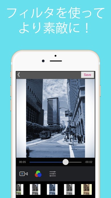 スマートフォンでたくさんの写真を撮影している人なら、静止画の組み合わせで面白い動画を作成することが出来るかもしれません!このアプリでは、複数の写真を利用して音楽をつけることで楽しい動画を作ることが出来るようになっています。動画にフィルターをかけることでコントラストや色合いなどの調整をしたり、動画の再生速度を調整したり、動画をトリミングしたりといった編集機能も非常に充実しているので楽しい動画を作ることが出来るはずです。