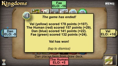 Kingdoms is built on the same successful MobileEuroCard platform that was used to create Reiner Knizia's High Society and Reiner Knizia's Money. Simple gestures allow you to grab and move tiles. Everything is animated, for a colorful play experience.