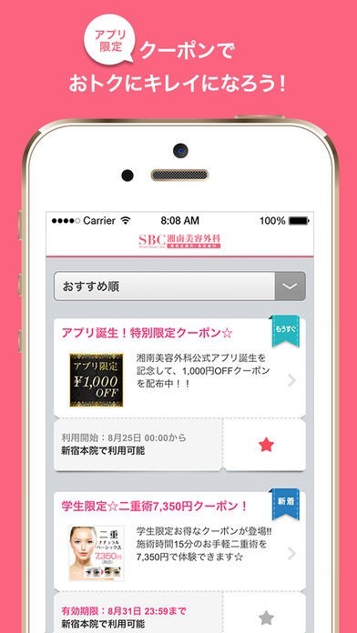 湘南美容外科公式アプリ!限定のクーポンやスタンプカードなどお得体験盛りだくさんのスクリーンショット