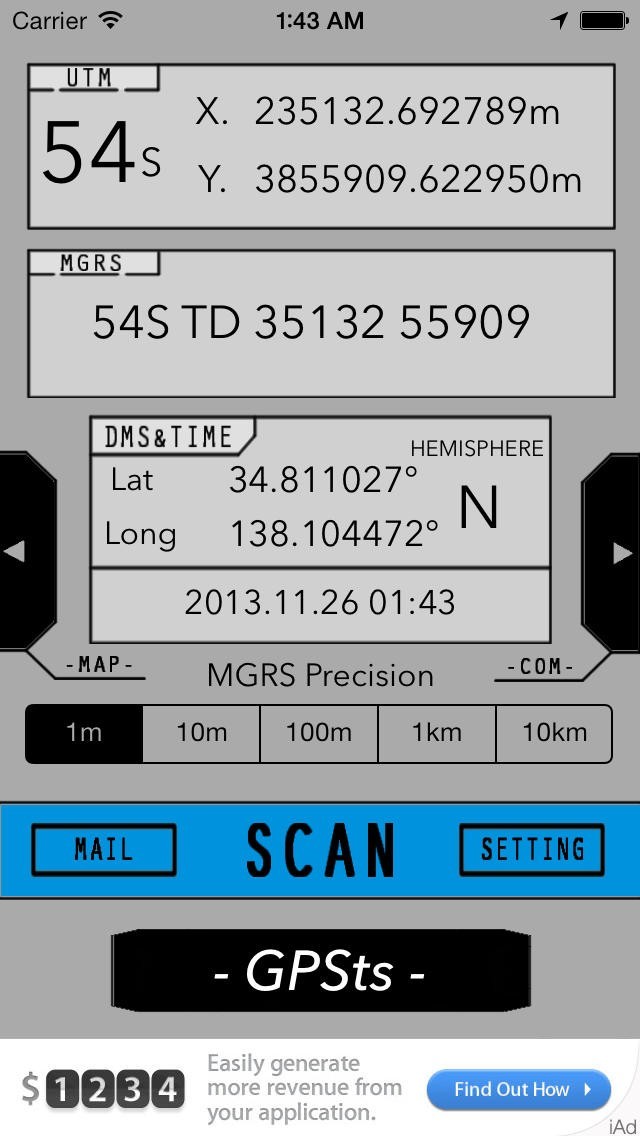 アメリカ陸軍工兵司令部が開発し自衛隊やNATOなどで使用されている、独自の座標システムであるUTM/MGRSを、スマートフォンで利用することができるアプリとなっています。