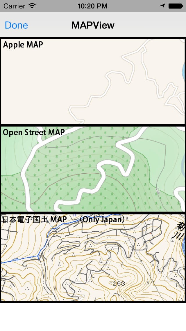 AppleMAP、openstreetMAP、地理院地図の三つのレイヤーからMAPを選択することができるようになっているので自分の目的に合わせたMAPを使うことができます。