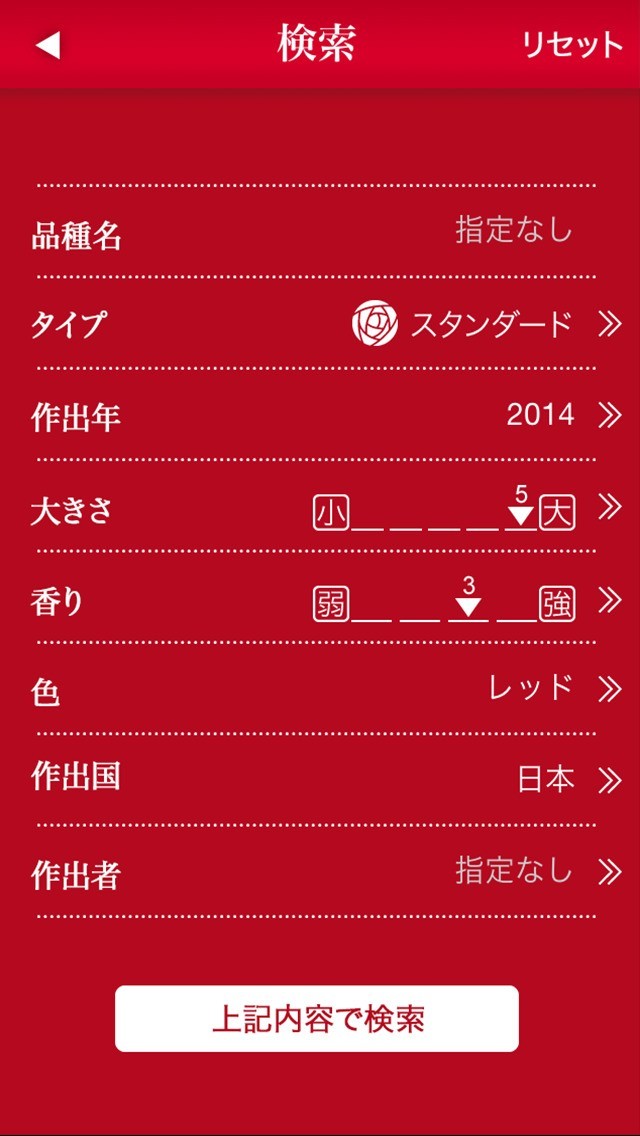 ・色、タイプ、花の大きさ、香りの強さなど、条件指定検索