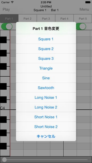 App Storeより引用ファミコン風の曲が簡単に作成できる、ピアノロール式作曲アプリです。