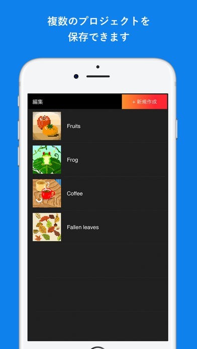 気に入った作品のプロジェクトファイルを複数保存できるので後日編集することも可能です。