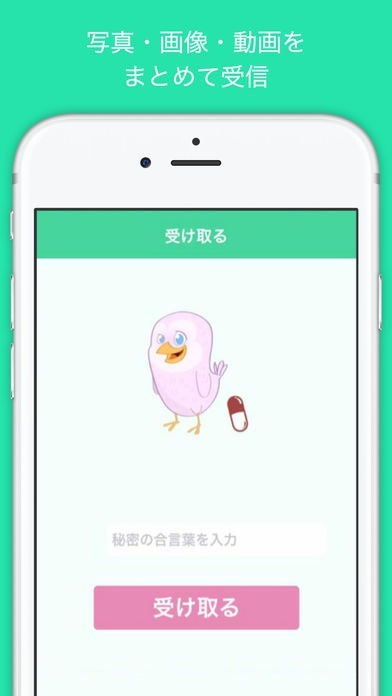 アップされた合言葉を入力すれば、写真や動画を一度に受け取れます。