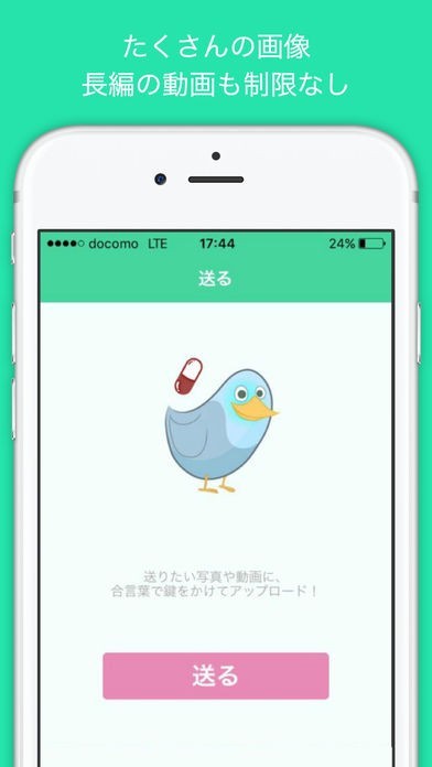 アップしたい写真や動画を選んで秘密の合言葉を決めるだけ!